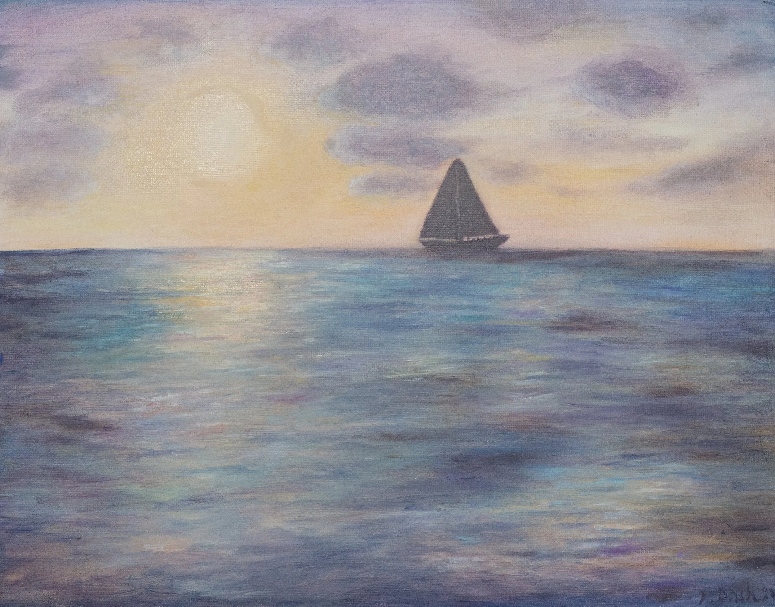 My style can be described as realistic, illustrative, and romantic, and I work in pastel, watercolor, and acrylic paint as well as graphite.