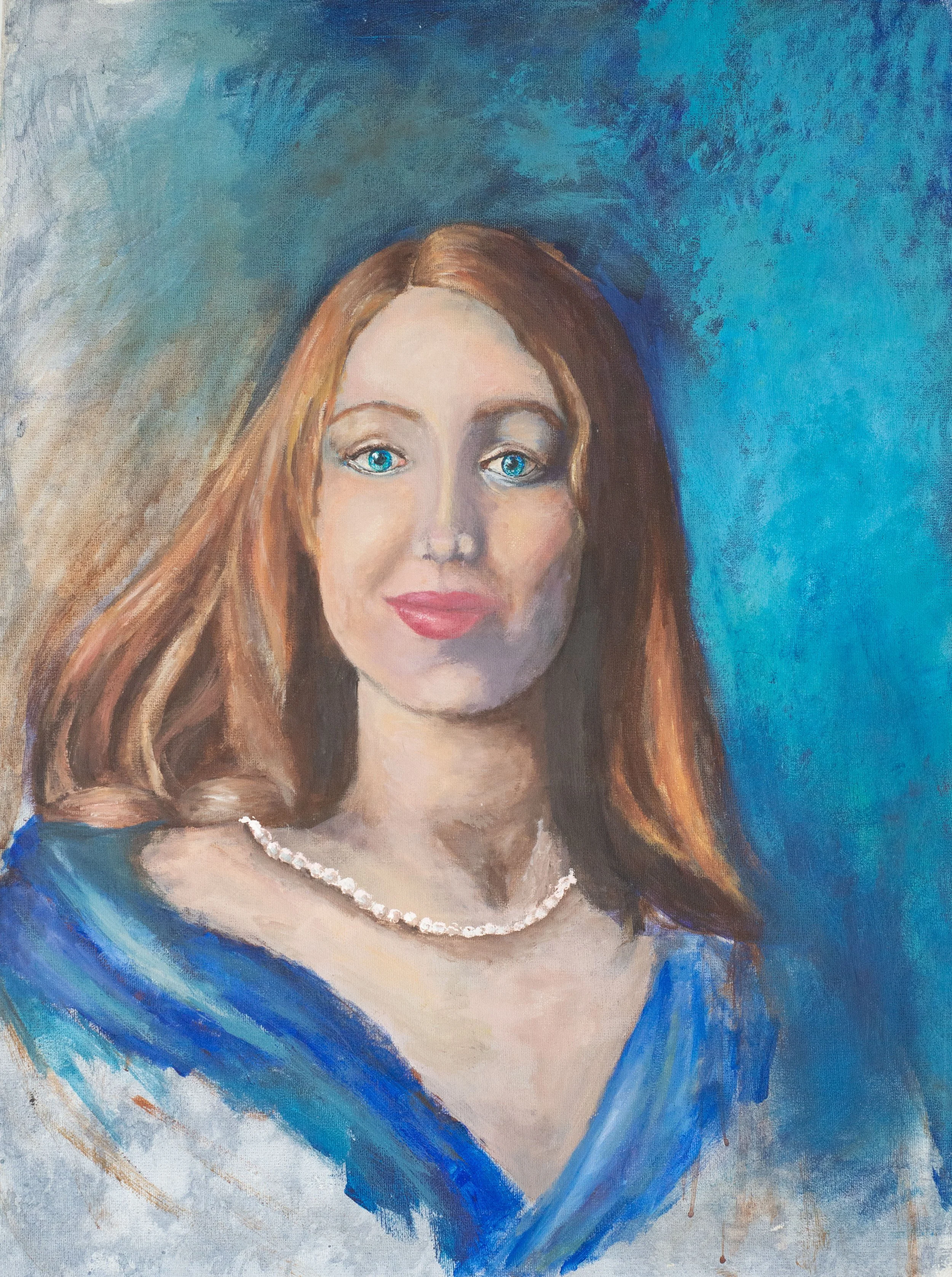 I painted this self-portrait in acrylics when I was 17 from a high senior photograph that was taken by my mentor and dear friend, Rosemary Carroll of Studio Eight Photography, and my eyes were opened to the importance of high quality photography for art reference images.